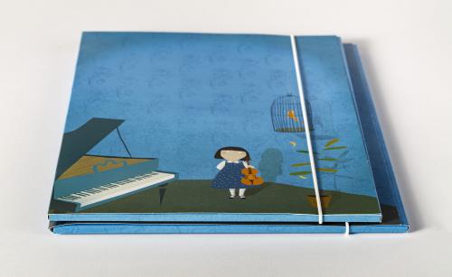 Elegant cardboard folder coated with luminous foil, A4 size, with illustrations by Joanna Rusinek from the Children's Series: Cricket by Ewa Iwan's "I Play Violin Nicely".