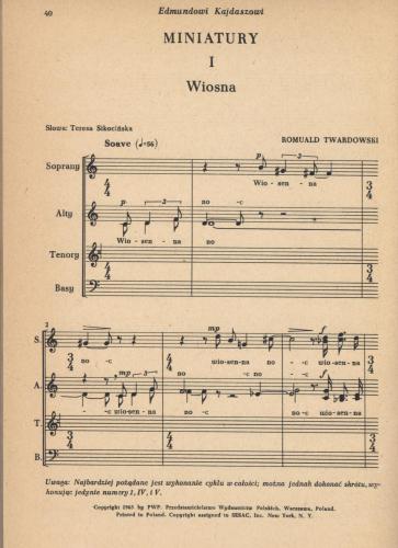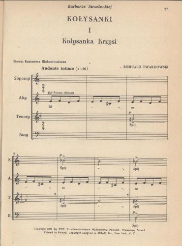 Study score does not authorise the copying and preparation of performance materials. In order to legally acquire choral scores, at a preferential price for the ensemble, please send an e-mail to: sales@pwm.com.pl