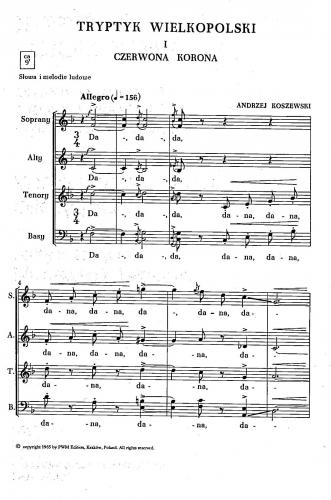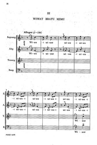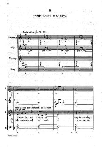 Study score does not authorise the copying and preparation of performance materials. In order to legally acquire choral scores, at a preferential price for the ensemble, please send an e-mail to: sales@pwm.com.pl