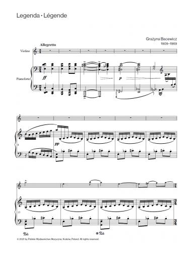 The proposed fingering is based largely on the ideas and propositions given by the composer in the autograph manuscript of the work. Bacewicz herself was an excellent violinist and knew perfectly well how to prepare a work to meet the requirements of comfortable and effective instrumental performance. I am convinced that Grażyna Bacewicz’s Légende will come to be readily played both by pupils at secondary-level schools of music and by many world-renowned artists.