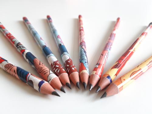 A colored pencil coated with a luminous foil, with an eraser and a graphic motif by Mateusz Kołek, encouraging both specialists and amateurs to search for hidden content about the life and work of Fryderyk Chopin.
