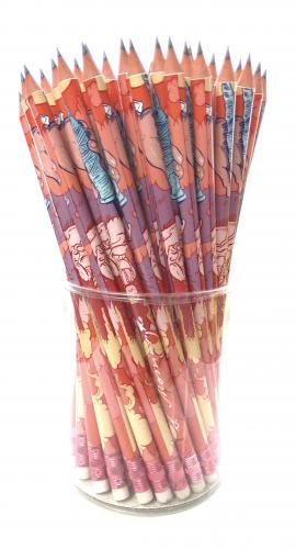 A colored pencil coated with a luminous foil, with an eraser and a graphic motif by Mateusz Kołek, encouraging both specialists and amateurs to search for hidden content about the life and work of Stanisław Moniuszko.