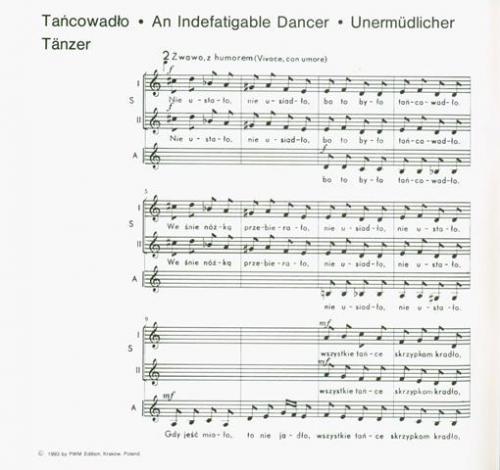 Study score does not authorise the copying and preparation of performance materials. In order to legally acquire choral scores, at a preferential price for the ensemble, please send an e-mail to: sales@pwm.com.pl