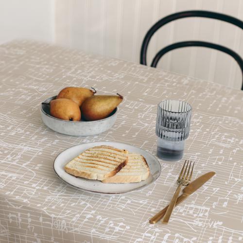 Original tablecloth in a warm beige color with sheet music. Perfect for dining room, living room and for summer garden parties.