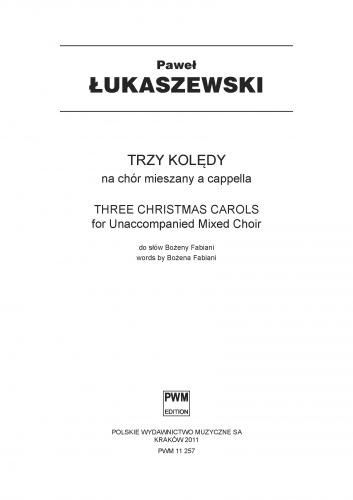 Paweł Łukaszewskis invaluable contribution in expanding Polish Carol literature is confirmed by a new collection containing three carols, written in 2002 to words by Bożena Fabiani: Do stajenki, Niebo Cię zesłało, Serce me jest jak Betlejem.