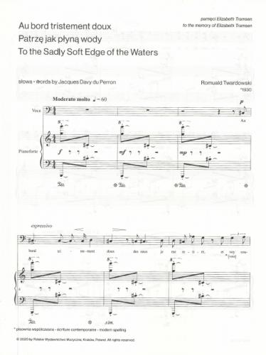 The structure and the compositional technique of Three Farewell Sonnets (written to Old French poetic texts) undoubtedly refer to the experience gained by Twardowski during his composition studies in the class of Nadia Boulanger in Paris. (...) The enormous sadness arising from the authentic experiences of the composer, noticeable in all three songs, is extremely moving.