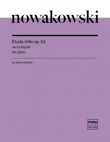 Étude-trille, Op. 53 was written in 1859 and is a concert etude in the Romantic style. The main technical difficulty, emphasised by the title, is articulation connected with the use of trills, and the musical idea itself seems to be inspired by the finale of the Sonata in C major, Op. 53 by Ludwig van Beethoven. The etude presents a form which is typical of Nowakowski’s piano works; namely, developing the theme in the gradual way in terms of texture and dynamics. Fingering included in the notation is the proposition of the author of the edition. It should be mentioned that the concept was not to follow the typical schemas for the piano fingering in the 1st half of the 19th century, but – due to the greater weight and depth of the keys of a modern piano – the basic idea was to suggest solutions that would enable the pianist to comfortably perform the figures while playing contemporary instruments. The pedalisation in the score is the original concept of the composer.