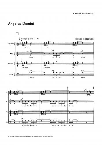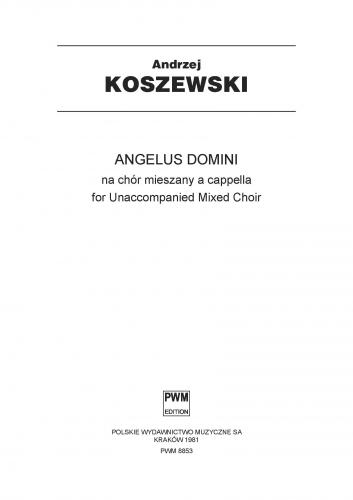 Angelus Domini na chór mieszany a cappella to jeden z najpopularniejszych utworów Andrzeja Koszewskiego. Został zadedykowany Papieżowi Janowi Pawłowi II, wielkiemu propagatorowi tej właśnie modlitwy. Na szczególne podkreślenie zasługuje zastosowanie w utworze nietypowej artykulacji - od recytacji i szeptu, aż do skandowania i traktowania chóru jako pewnego rodzaju wokalnej orkiestry. Utwór Angelus Domini powstał w 1981 roku, a jego prawykonanie miało miejsce w Poznaniu, 3 lipca 1981 roku, kiedy wykonany został przez chór Minnesota University Singers.