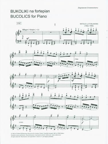 ''Bukoliki'' powstały w okresie pracy Lutosławskiego nad partyturą ''Koncertu na orkiestrę'', utworu, który zawarł mistrzowską syntezę jego stylu folklorystycznego. W ''Bukolikach'', opartych na melodiach kurpiowskich ze zbioru ks. W. Skierkowskiego, rozwija kompozytor szereg subtelnych metod (m. in. w zakresie metrorytmiki), które zawsze doskonale przylegają do folklorystycznego tworzywa, ukazując zarazem w zupełnie nowym świetle cechy wyrazowe ludowego autentyku. Na szczególną uwagę zasługuje też doskonałe wyważenie użytych środków i współgranie przejrzystej faktury z miniaturową formą.