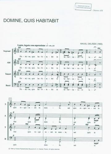 Kompozytor wykorzystał do opracowania muzycznego sugestywny, napominający tekst psalmu XIV. Na postawione na początku pytanie (''Panie, kto może mieszkać w twoim domu?'') udzielona zostaje odpowiedź w postaci szeregu przykładów prawego postępowania, które na zakończenie są skomentowane i podsumowane (''Kto tak uczciwie stale postępuje na wieki upadku nie dozna. Będzie mieszkał w przybytku Twoim.''). Początek i koniec brzmią w dostojnej homorytmii. Środkową część natomiast kształtuje kompozytor w oparciu o różnorodne polifoniczne zabiegi, jak nakładanie, alternowanie, imitowanie głosów, a także kunsztowne zmiany dynamiczne.