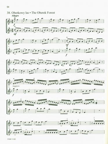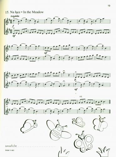 Prezentowany zbiór duetów na skrzypce powstał z myślą kształtowania świadomości muzycznej młodych muzyków w trudnej dziedzinie wykonawstwa, jaką jest muzyka kameralna. Moim celem nie było jednak wyłącznie rozwijanie słuchu i intelektu uczniów, lecz przede wszystkim obdarowanie ich przyjemnością wspólnego muzykowania. Duety posiadają obrazowe tytuły, mające wpływać na wyobraźnię skrzypków. Różnią się też długością od krótkich, 8-taktowych, dostępnych już dla pierwszoklasistów, po dłuższe, które mogą wykonać gimnazjaliści czy licealiści. Przeważa w nich forma trzyczęściowa ABA1. Specjalnie przemyślana i przygotowana konstrukcja daje możliwość wykazania się zarówno pierwszemu, jak i drugiemu skrzypkowi. We wszystkich prezentowanych utworkach każdy z wykonawców prowadzi raz głos wiodący, innym razem towarzyszący.