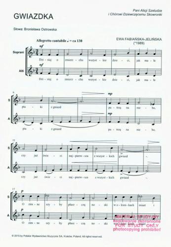 Partytura studyjna nie upoważnia do kopiowania i sporządzania głosów wykonawczych. W celu legalnego nabycia większej ilości partytur chóralnych, po preferencyjnych cenach dla zespołu, prosimy wysłać e-mail pod adres: handel@pwm.com.pl