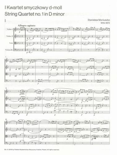 Kwartet smyczkowy d-moll (ofiarowany Józefowi Elsnerowi). Utwór ten to kompozycja młodzieńcza, ukończona najprawdopodobniej jesienią 1839 r. Charakteryzuje się typową dla Moniuszki prostotą i śpiewnością, pod względem stylistycznym pozostaje pod wpływem klasyków wiedeńskich (menuetowy charakter scherza w obu kwartetach). Opracowania wykonawczego głosów dokonał Lutosławski Quartet.