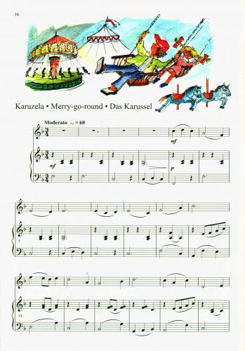 Kolorowo ilustrowany zbiór zawiera krótkie utwory na skrzypce i fortepian, przeznaczone dla uczniów pierwszych klas skrzypiec. Zamiarem autora było nie tylko spełnienie celów dydaktycznych (zmiana strun, początki zmiany pozycji, zmiany dynamiki, efekty wyrazowe), ale i zapewnienie młodym muzykom czerpania przyjemności z gry. Partia fortepianu jest na tyle prosta, aby mógł wykonać ją drugi uczeń.
