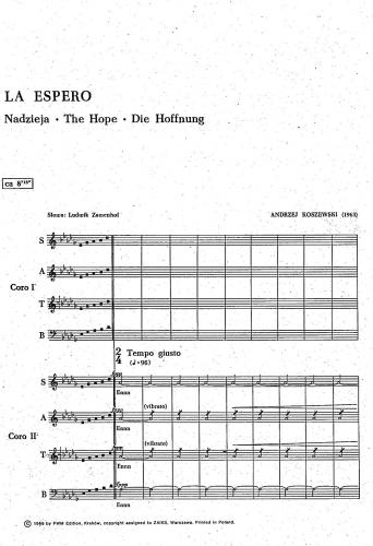 ''La espero'' to jeden z lepiej znanych utworów polichóralnych A. Koszewskiego. Przeznaczony jest na dwa chóry mieszane.