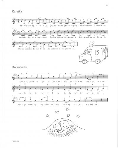 Materiał nutowy przeznaczony dla dzieci rozpoczynających swoją muzyczną przygodę i tych nieco starszych. Podręcznik ten – poprzez dodanie do melodii słów – pozwala uczniowi wkroczyć w krainę muzyki, jak w świat fascynującej przygody.