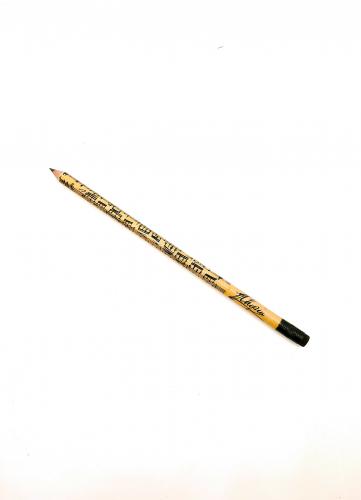 Beżowy ołówek z gumką, z nadrukiem fragmentu nut Chopina i fascimile podpisu kompozytora. Idealny jako drobny podarunek dla każdego muzyka.