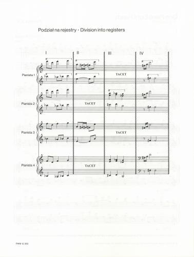 Każdy z czterrech wykonawców realizuje tę samą partię, lecz jest ona grana w różnych rejestrach. Rejestry podane są na piątej stronie niniejszej publikacji.