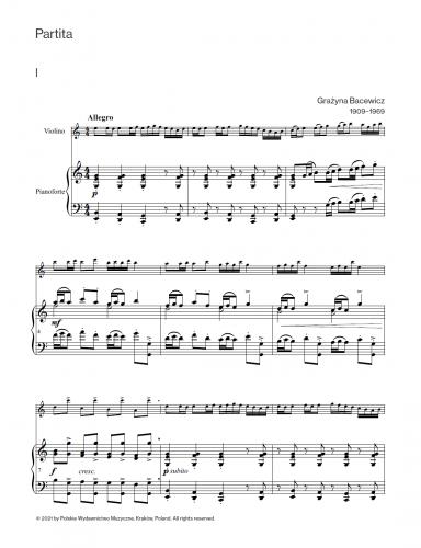 Partita na skrzypce i fortepian Grażyny Bacewicz to trzyczęściowy utwór powstały na początku lat trzydziestych w czasie studiów kompozytorki w Warszawie i w Paryżu. Choć w literaturze muzycznej dużo większe uznanie zdobyła inna Partita na skrzypce i fortepian Grażyny Bacewicz (skomponowana w 1955 roku), to już we wczesnym okresie twórczości tej artystki widoczny jest ogromny potencjał oraz znakomity warsztat kompozytorski. Najlepszym tego dowodem jest ponowne wykorzystanie materiału muzycznego Partity, a dokładniej ujmując – partii skrzypcowej drugiej i trzeciej części, w powstałej kilka lat później wersji na skrzypce solo.