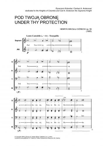 Inspiracją do napisania tego utworu było znalezienie w ''Śpiewniku kościelnym'' księdza jana Siedleckiego - przepięknej antyfony ''Pod Twoją obronę''. Melodia tej antyfony, którą naturalnie dla własnych potrzeb trochę zmodyfikowałem - stanowi główną osnowę całego utworu. [Henryk Mikołaj Górecki]
