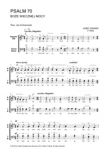 Partytura studyjna nie upoważnia do kopiowania i sporządzania głosów wykonawczych. W celu legalnego nabycia większej ilości partytur chóralnych, po preferencyjnych cenach dla zespołu, prosimy wysłać e-mail pod adres: handel@pwm.com.pl