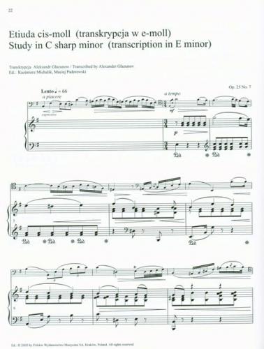 - Autor transkrypcji: Aleksander Głazunow, Auguste Franchomme, Kazimierz Michalik, Maciej Paderewski, David Popper, Karl Dawydow, Friedrich Grützmacher