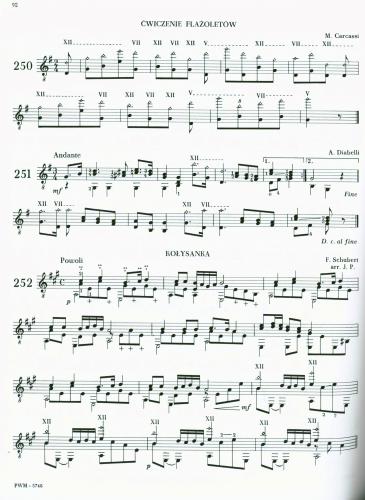 Szkoła obejmuje ona zakres kilku najczęściej używanych, a zarazem najłatwiejszych tonacji i opiera się przede wszystkim na materiale okresu klasycznego, gdyż bez poznania literatury klasycznej nie może być mowy o studiach nowoczesnej muzyki gitarowej. Nie wyczerpuje wszystkich problemów gry, lecz daje jej podstawy, a tym samym powinna zachęcić do dalszych studiów i umożliwić je.