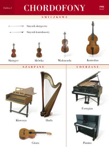 Tablica przedstawiająca instrumenty, nie tylko pomoc naukowa, ale też ozdoba pracowni muzycznej czy klasy.