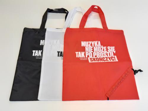 Torba na zakupy, główna komora otwarta, podwójne uchwyty. Unikalny system składania, dzięki ciąganemu sznureczkowi. Poliester
