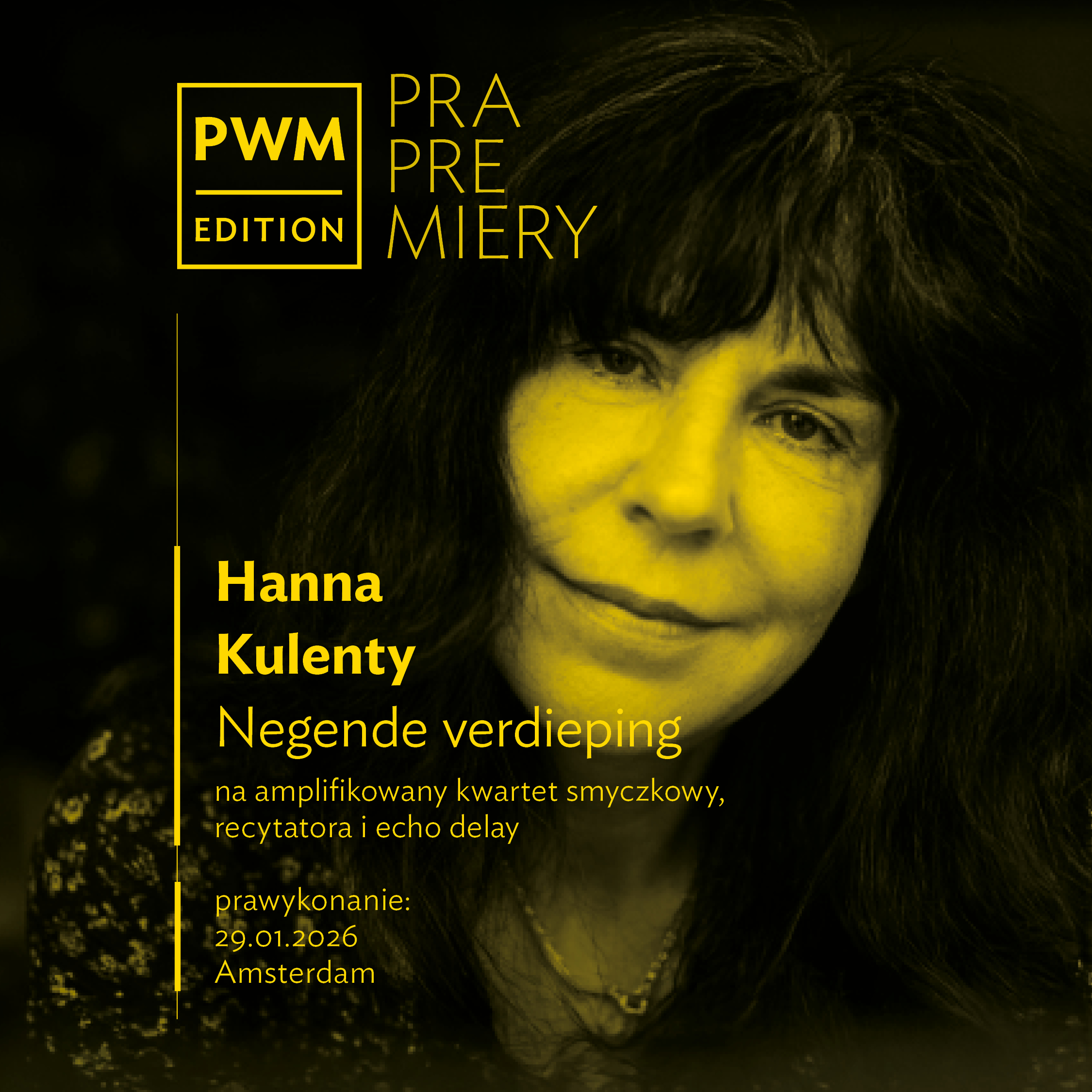 Punktem wyjścia dla projektu stał się cykl sześciu Kwartetów słonecznych op. 20 Josepha Haydna, w których kompozytor ukazał pełnię możliwości kwartetu smyczkowego. Trzy stulecia później Hanna Kulenty podejmuje dialog z dziedzictwem gatunku, interpretując pierwowzór przez pryzmat własnych doświadczeń i nowych perspektyw. Utwór zostanie prawykonany w Amsterdamie 29 stycznia przez Chaos String Quartet oraz Ariane Schulter (recytacja). Wydarzenie odbywa się w ramach String Quartet Biennale Amsterdam, w przestrzeni klubu jazzowego Bimhuis, będącego częścią kompleksu Muziekgebouw.